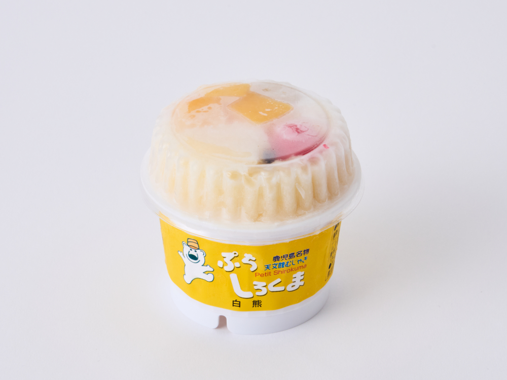 カップ 白熊 レギュラーサイズ 950円 ベビーサイズ 650円 ぷちサイズ 400円 おうちで白熊を食べられる!カップに入ったお持ち帰り用白熊です。 当店一番人気。創業当時から愛されている一品。自家製ミルクと蜜をたっぷりかけフルーツと十六寸豆を盛り付けた独特の味 ●レギュラーサイズ (直径12.5㎝×高さ12.0㎝) ●ベビーサイズ (直径10.2㎝×高さ7.5㎝) ●ぷちサイズ (直径7.8㎝×高さ6.8㎝) アレルギー情報 乳・卵 提供店舗 天文館本店1F テイクアウト アミュプラザ店 テイクアウト むじゃきっこ テイクアウト ・ CATEGORY ・ 白熊 軽食 甘味 ドリンク テイクアウト ・メニュー一覧に戻る・